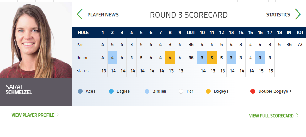 해당 선수는 이미 18홀을 아웃한 상태인데요 이 선수 또한 현재 타수는 -15이나 현재 공동 1위인 김효주선수와 사라 슈멜젤 선수가 어떤 타수로 경기를 마무리하냐에 따라서 해당 선수의 순위가 변경될 것으로 보입니다.